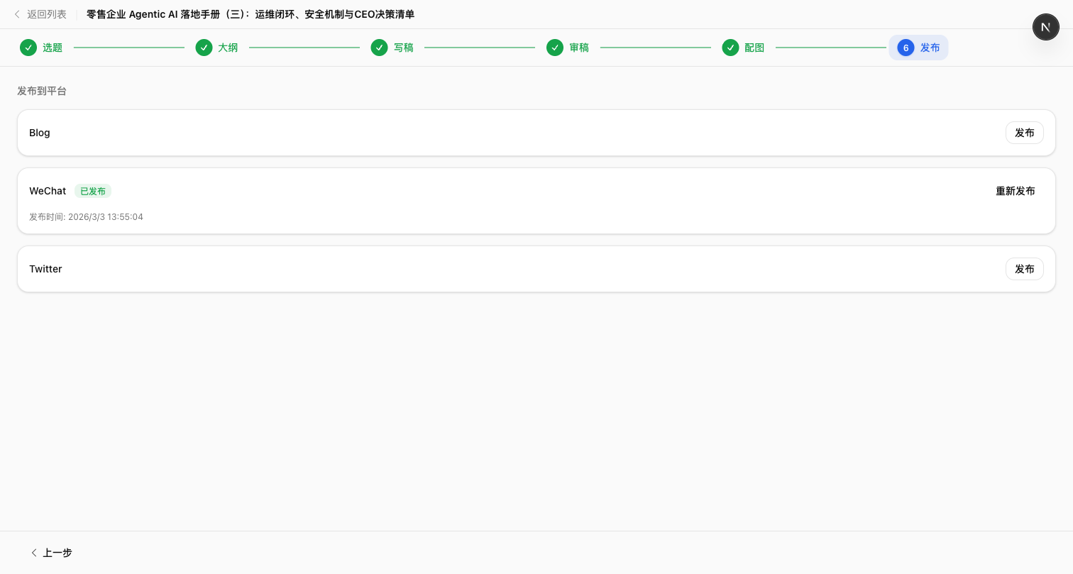微信公众号草稿箱直达,支持博客、Twitter 等多平台一键分发